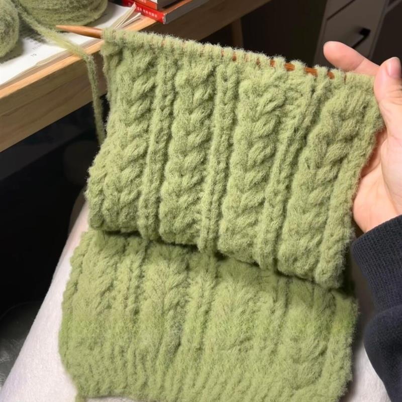 绿色围巾毛线手工diy编织材料包自制针织围脖2025冬季送男女朋友,河北 保定