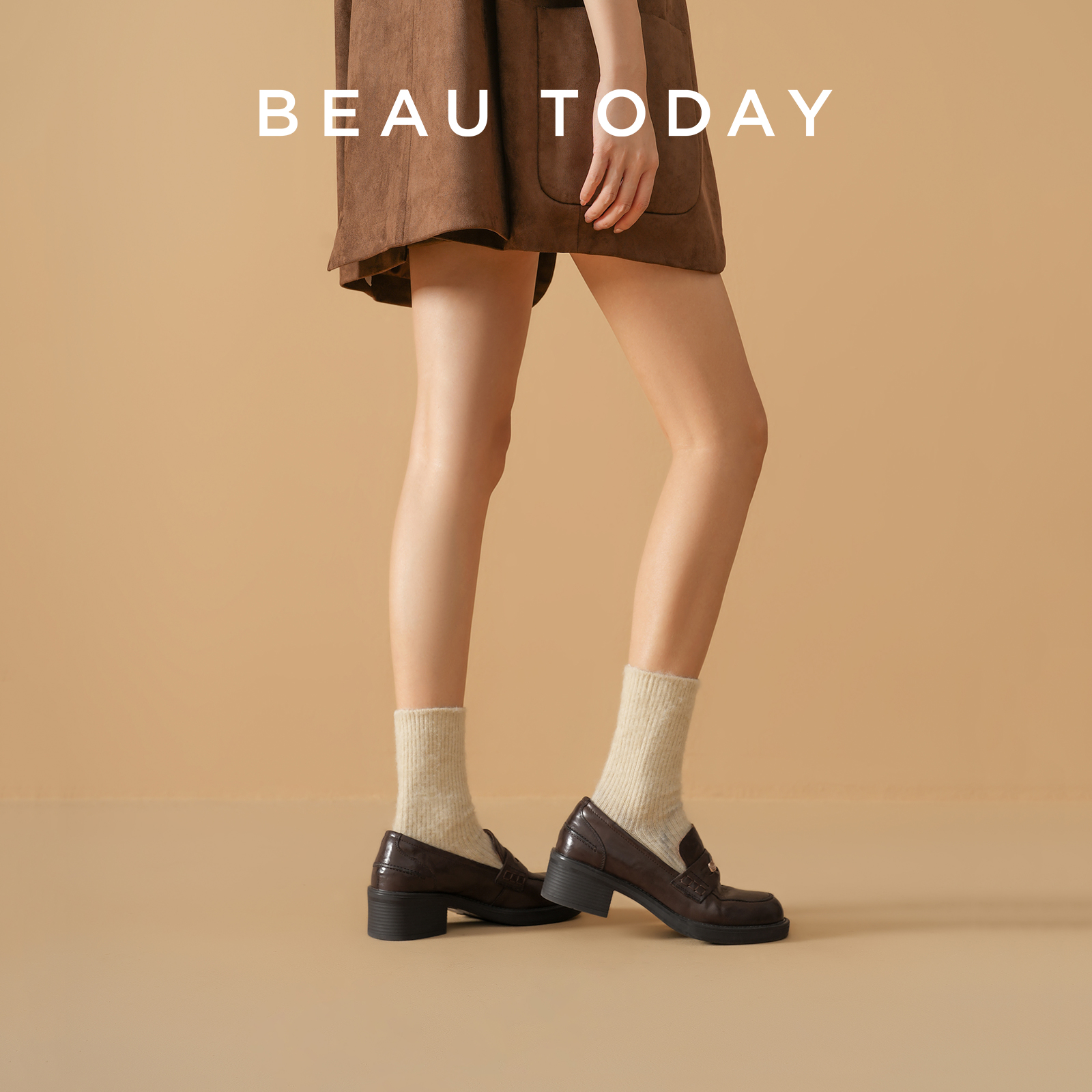 【焦糖金币】BeauToday厚底乐福鞋女真皮英伦风小皮鞋棕色单鞋