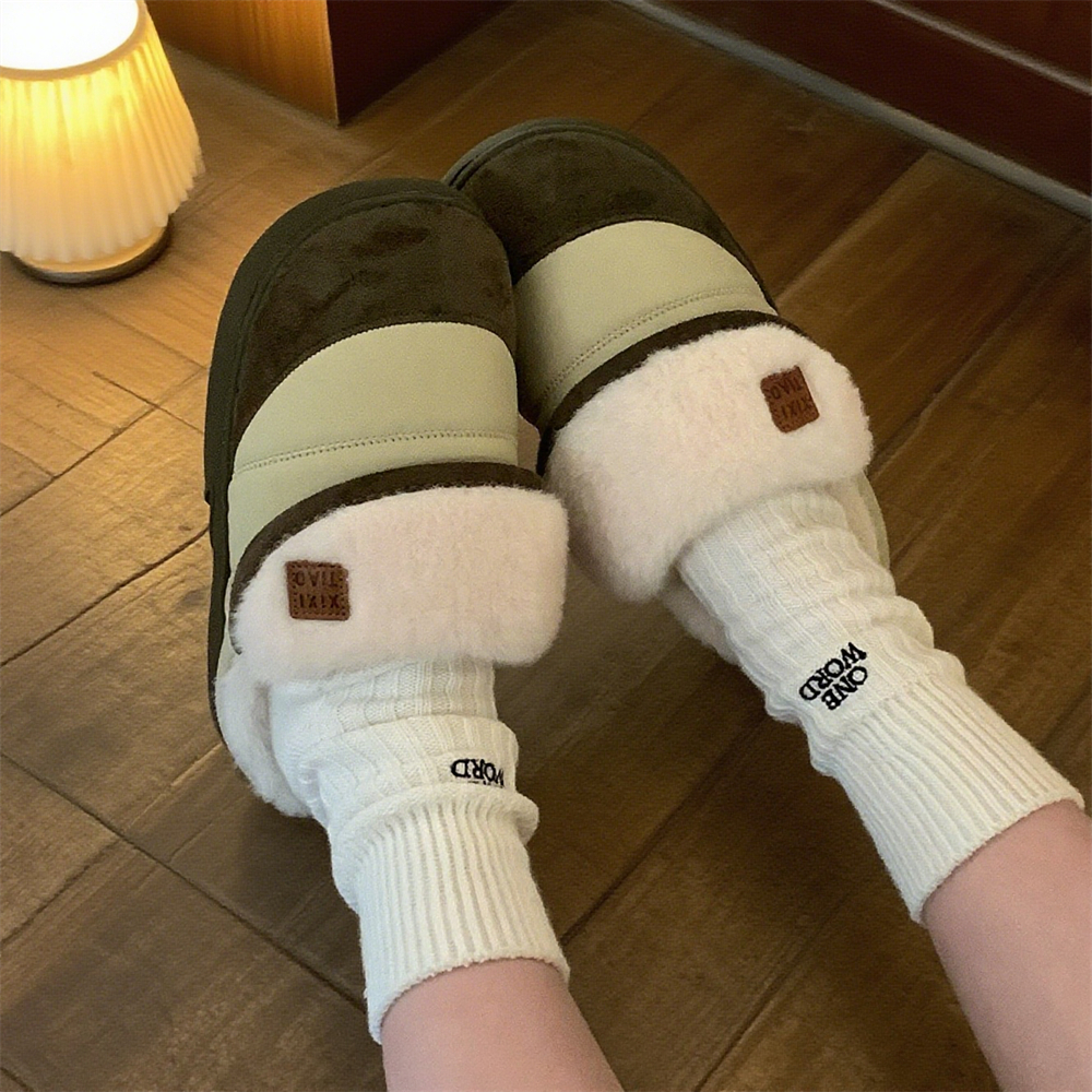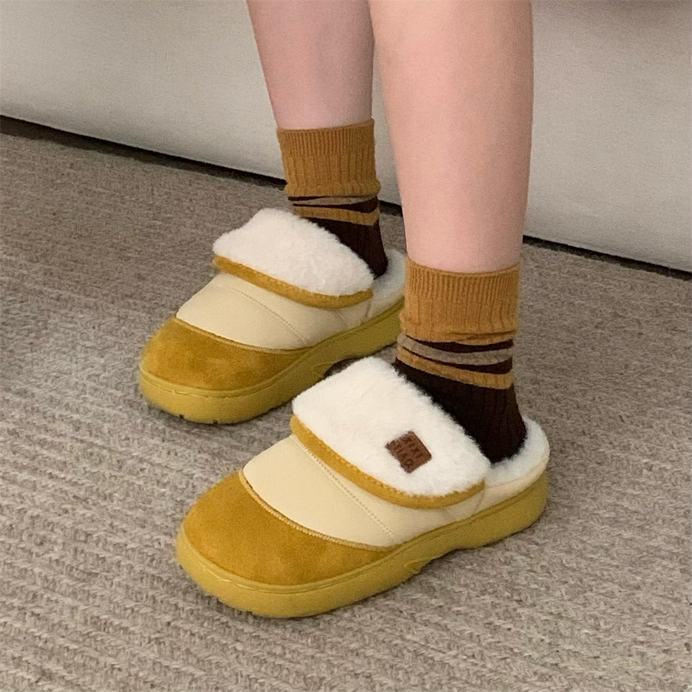 细细条 懒人一脚蹬加绒棉鞋女保暖防滑居家外穿冬季撞色棉拖鞋ins