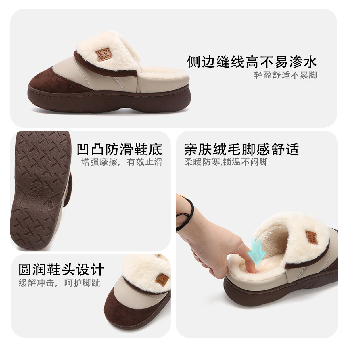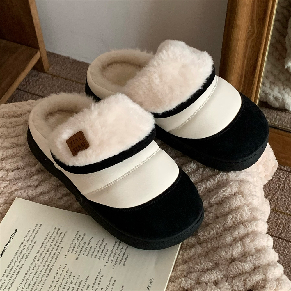 细细条 懒人一脚蹬加绒棉鞋女保暖防滑居家外穿冬季撞色棉拖鞋ins,广东 揭阳