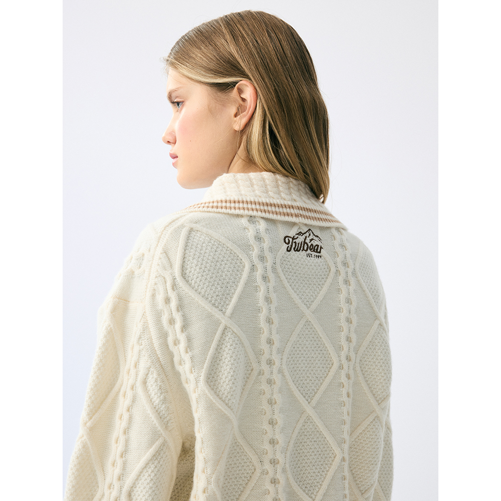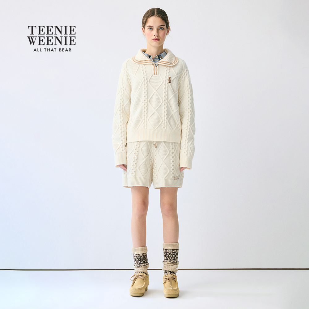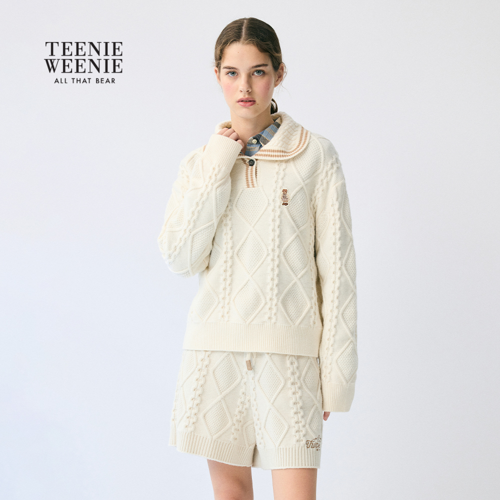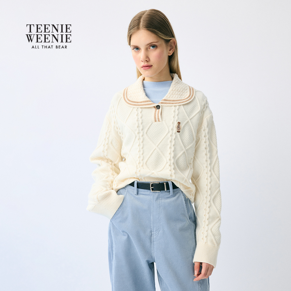 TeenieWeenie小熊女装毛衣2025秋季新款时尚翻领花纹套头长袖上衣,浙江 嘉兴