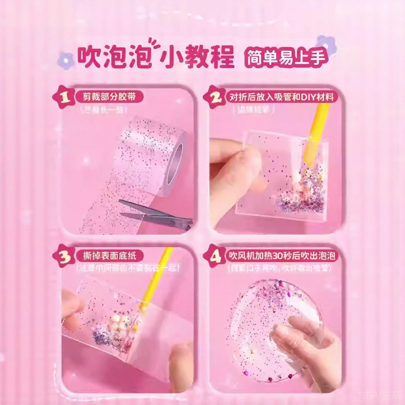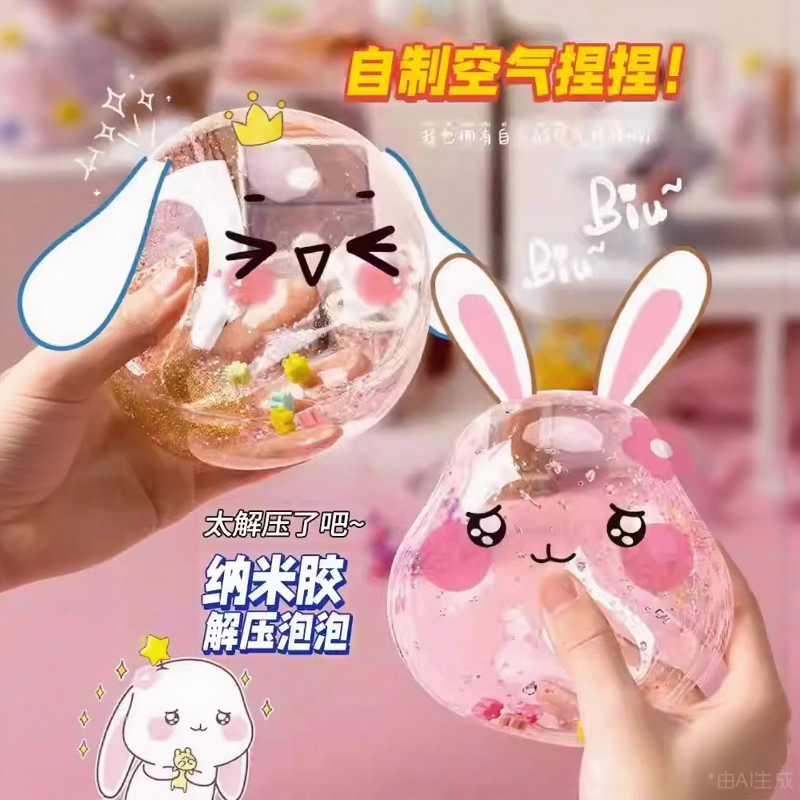 纳米胶捏捏乐吹泡泡套装手工diy自制解压玩具贴纸儿童生日礼物水球空气捏双面胶带女孩网红胶无毒材料豪华,浙江 杭州