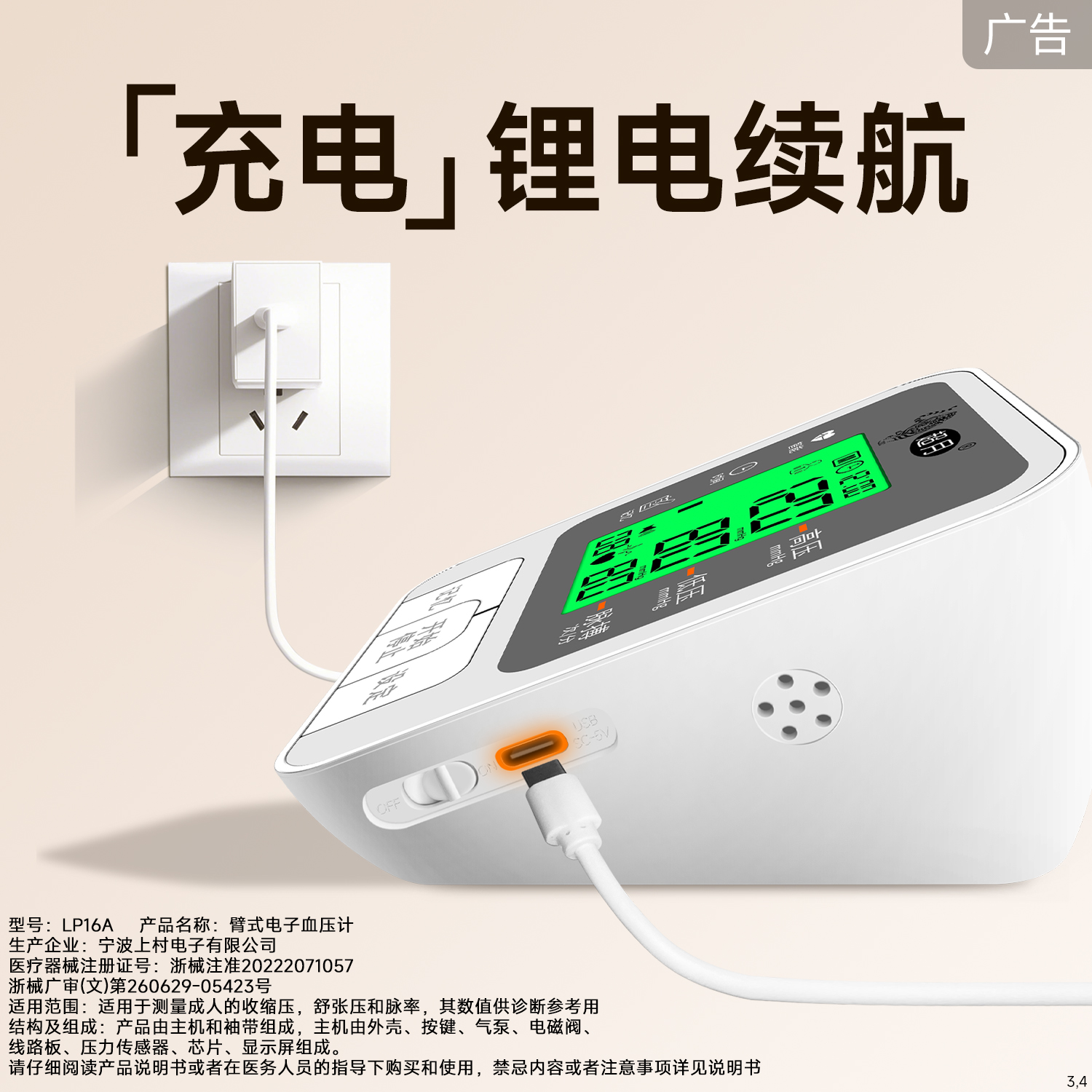 医用级充电臂式电子血压计官方旗舰店家用全自动高精准测量仪器表