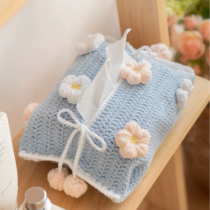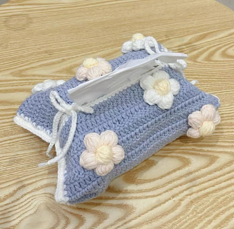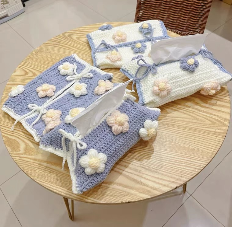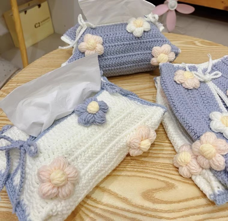 自制泡芙花草莓铃兰纸巾盒编织diy材料包毛线钩针抽纸盒解闷手工,浙江 温州