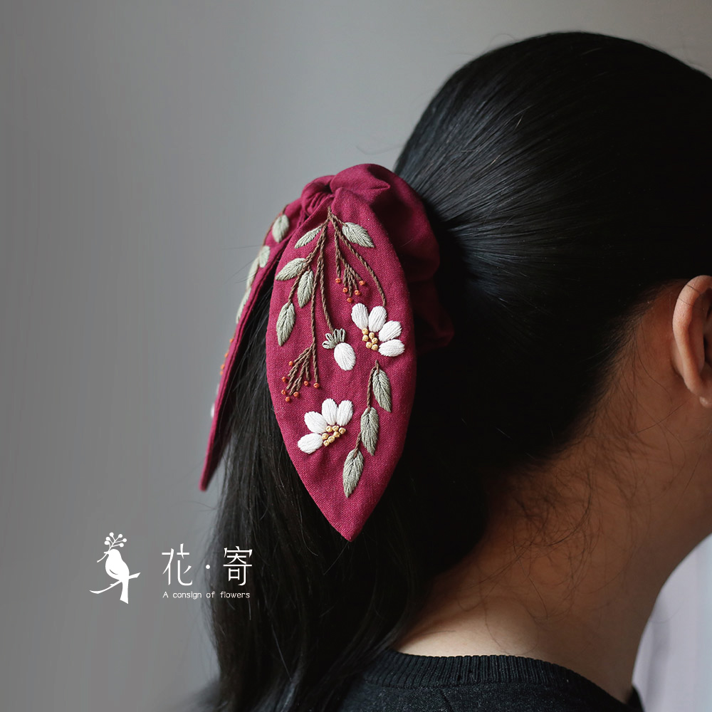 花寄 刺绣diy材料包手工制作兔耳朵发饰大肠发圈自制闺蜜妈妈礼物