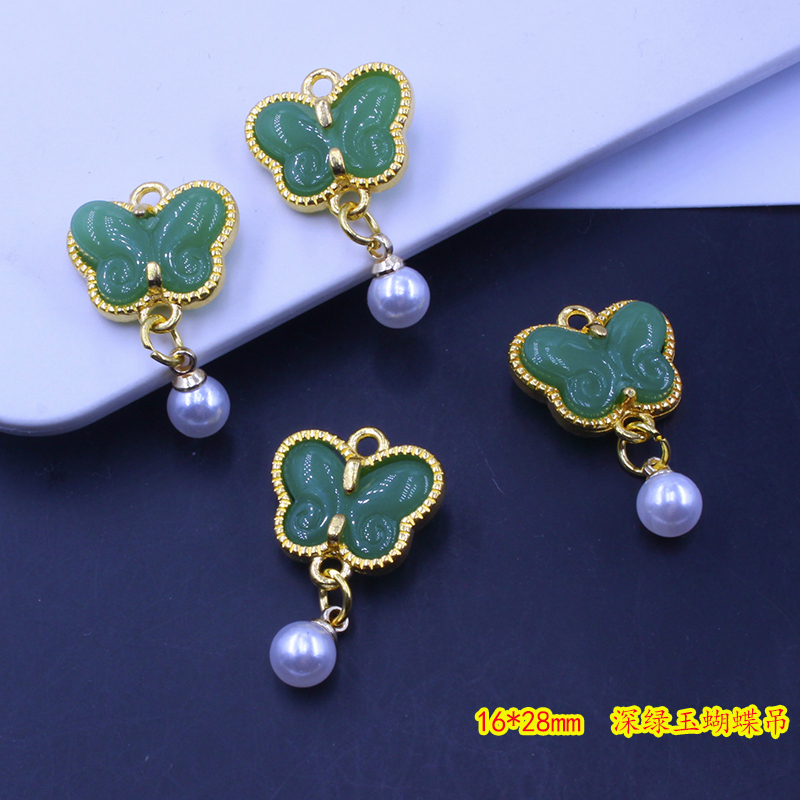 古法哑金保色滴油镶玉祥云蝴蝶仿玉玻璃玉扣 手工diy配饰配件材料,浙江 金华