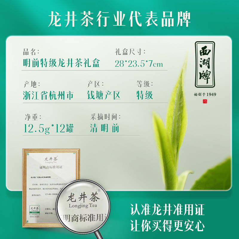 2025年新茶西湖牌明前特级龙井绿茶叶礼盒装商务送长辈,上海