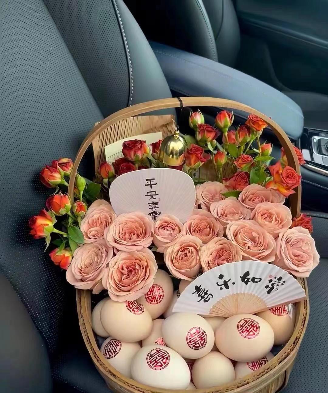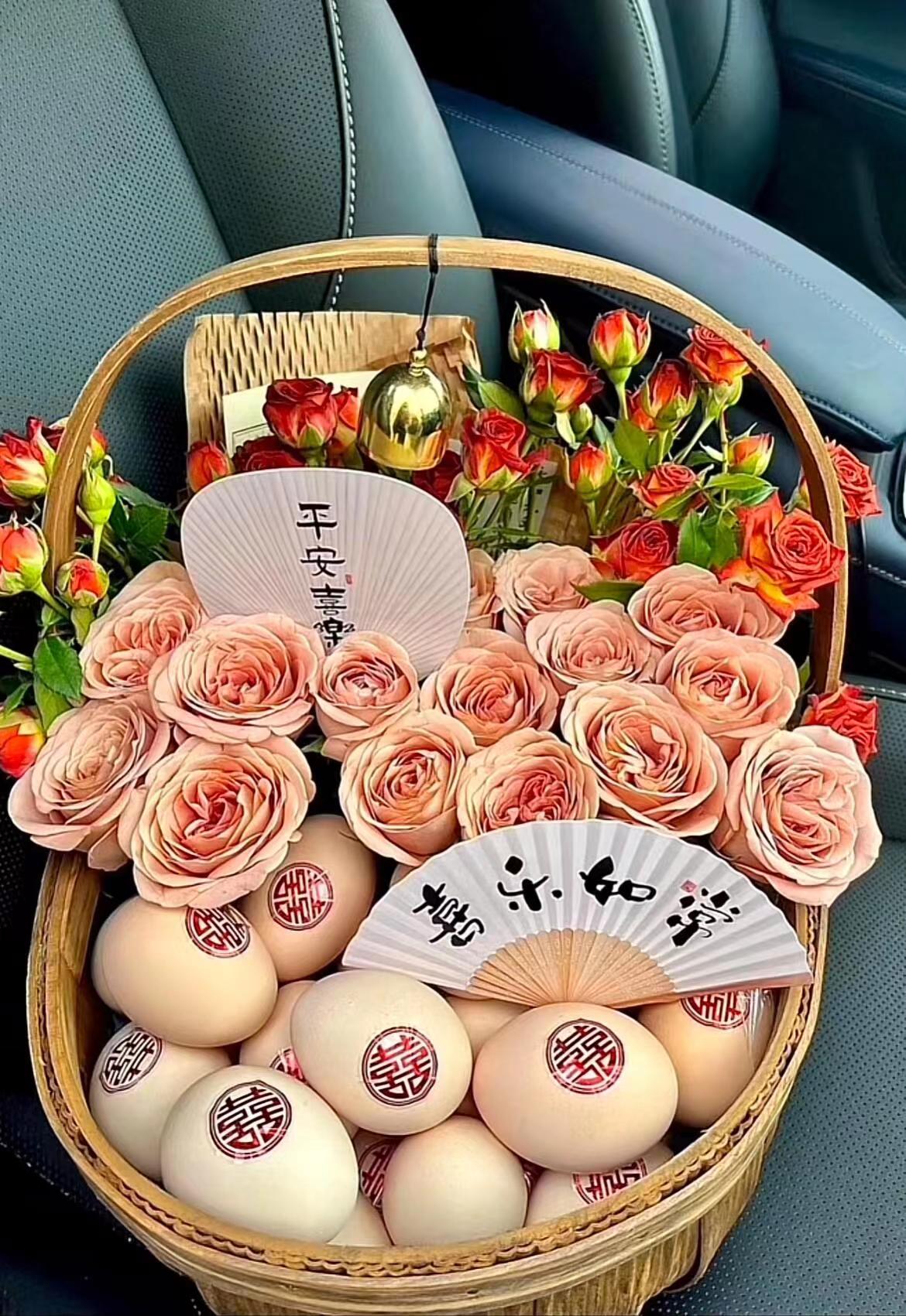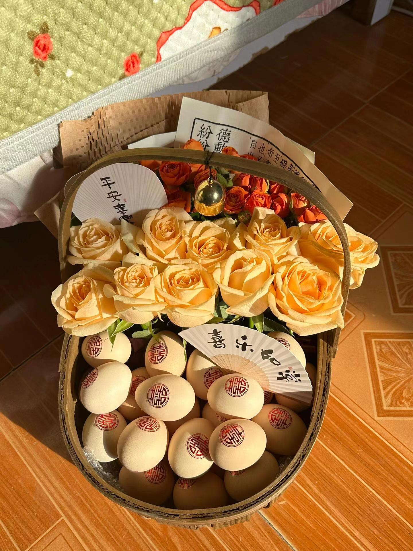 手提月子鸡蛋花篮送产妇DIY手提鸡蛋花篮材料送闺蜜月子手拎花篮,山东 临沂
