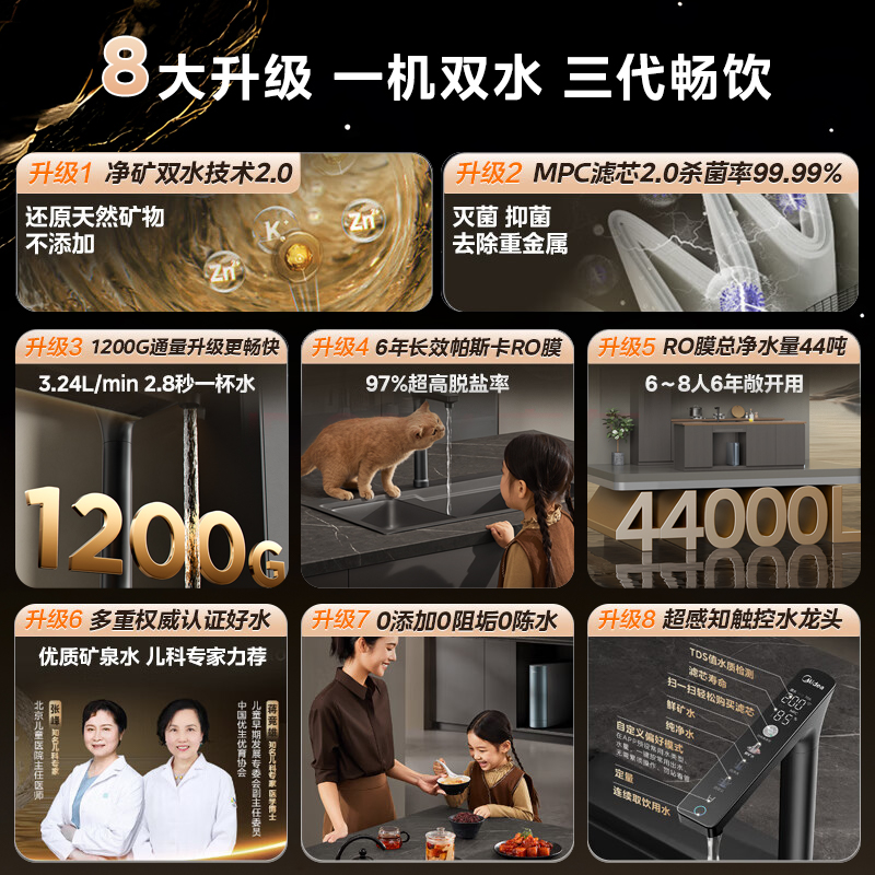 美的星河2.0净水器1200G家用净矿反渗透RO膜鲜矿水管线套装直饮机,北京