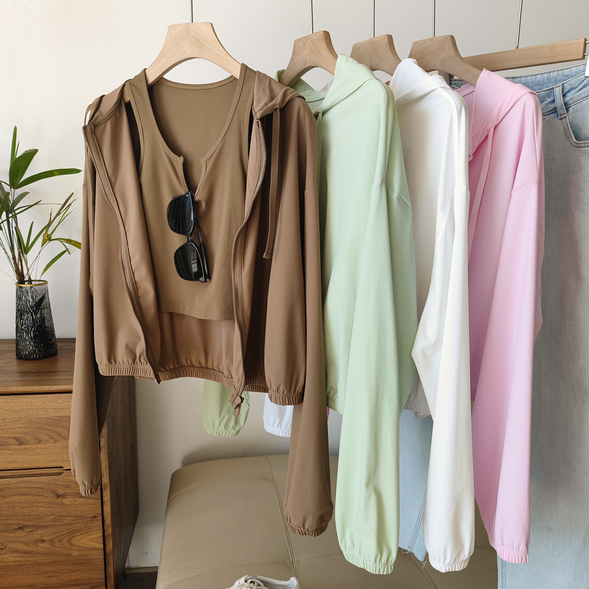 UPF50+ 女士连帽宽松防晒衣 健身衣 外套 短款皮肤衣 夏款 女装