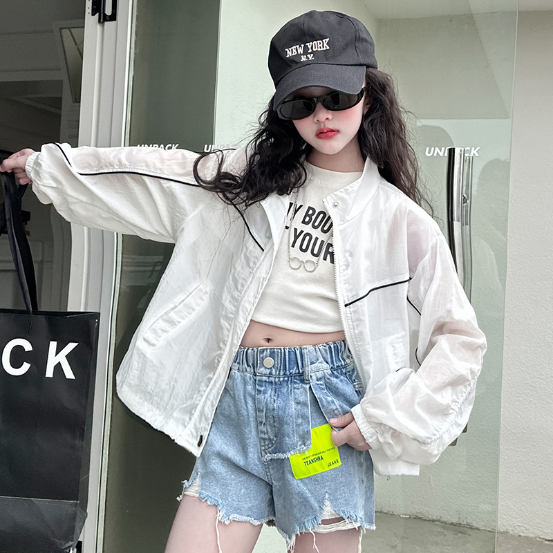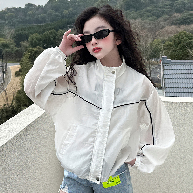 女童薄外套2025春夏新款中大童冰丝速干透气立领空调衫防晒皮肤衣,浙江 湖州