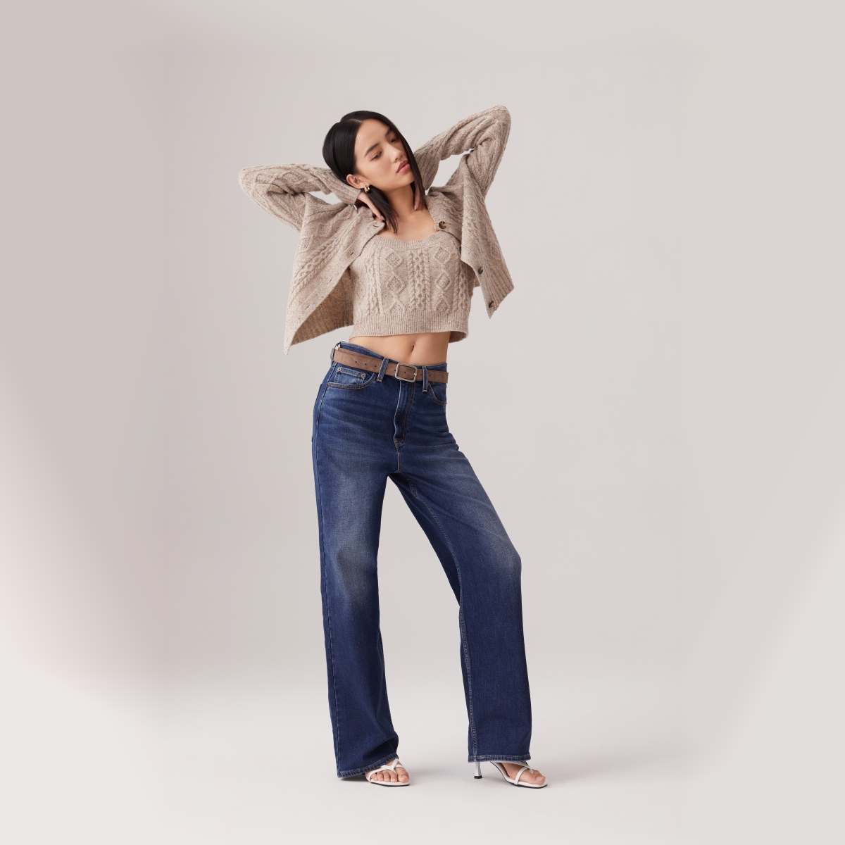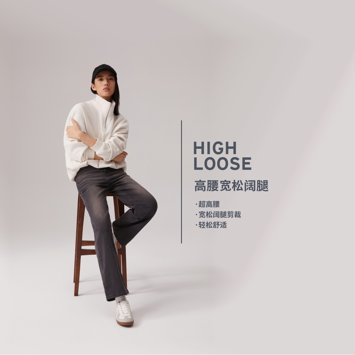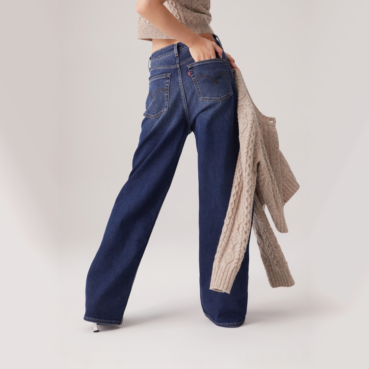 Levi's李维斯冬暖系列女士高腰宽松直筒阔腿美式复古休闲牛仔裤,上海
