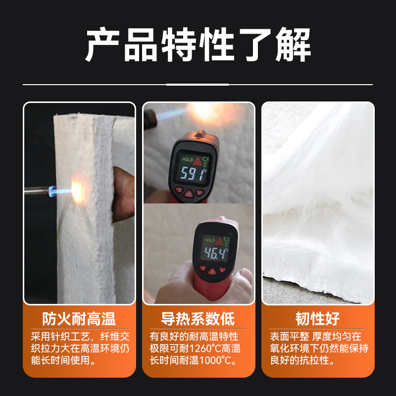防火棉硅酸铝针刺毯耐高温隔热保温棉锅炉岩棉石棉陶瓷纤维板材料