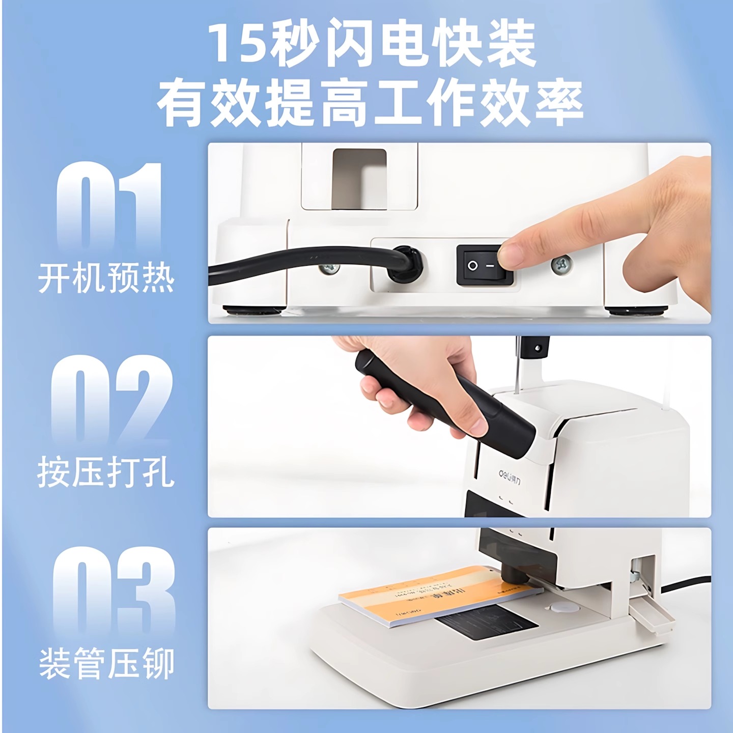 得力财务会计凭证装订机小型办公室专用手动打孔机装订标书资料账本文件票据全自动热熔铆管胶装机电动打孔器,浙江 杭州