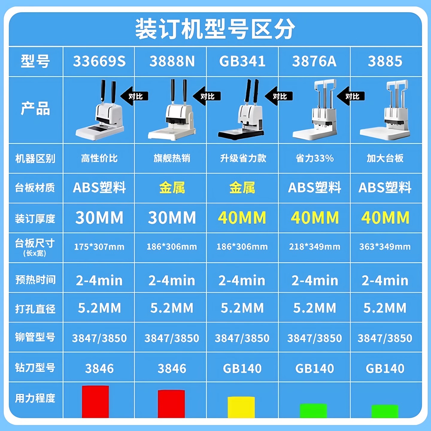 得力财务会计凭证装订机小型办公室专用手动打孔机装订标书资料账本文件票据全自动热熔铆管胶装机电动打孔器