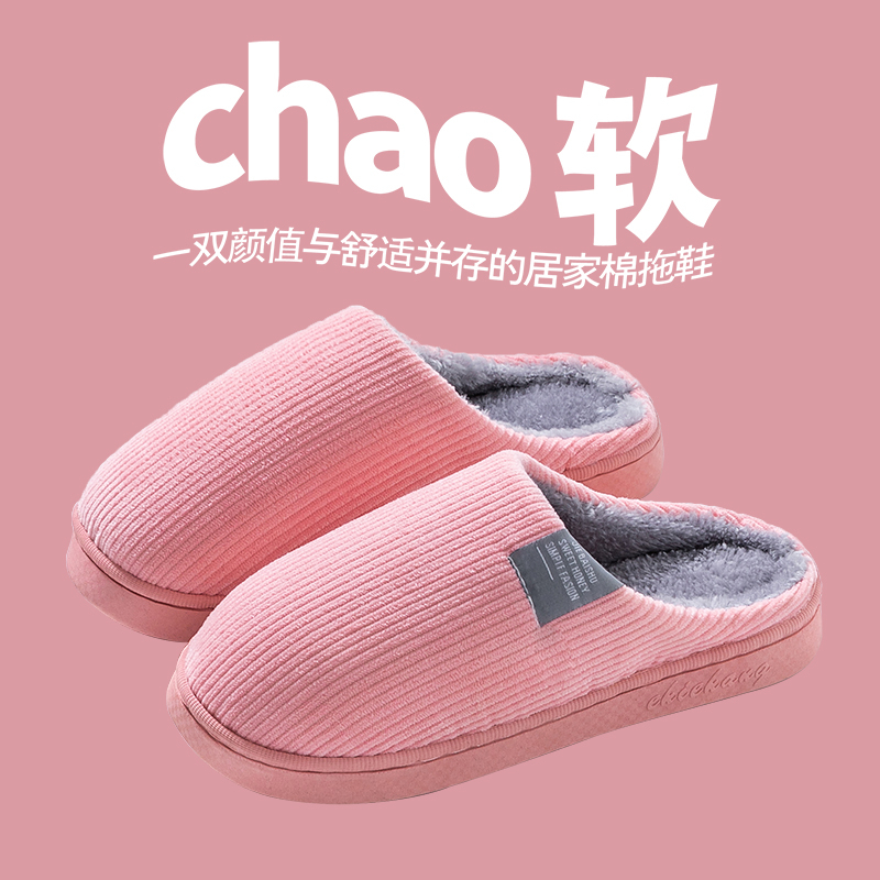居家家棉拖鞋女家用室内防滑保暖厚底情侣款男秋冬季软底毛绒棉鞋,上海