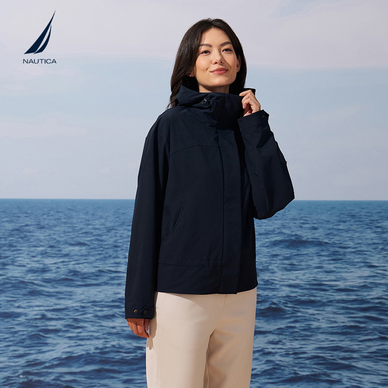NAUTICA/诺帝卡女装25秋季新品柔软登山呢带弹短款连帽夹克53JO02,上海