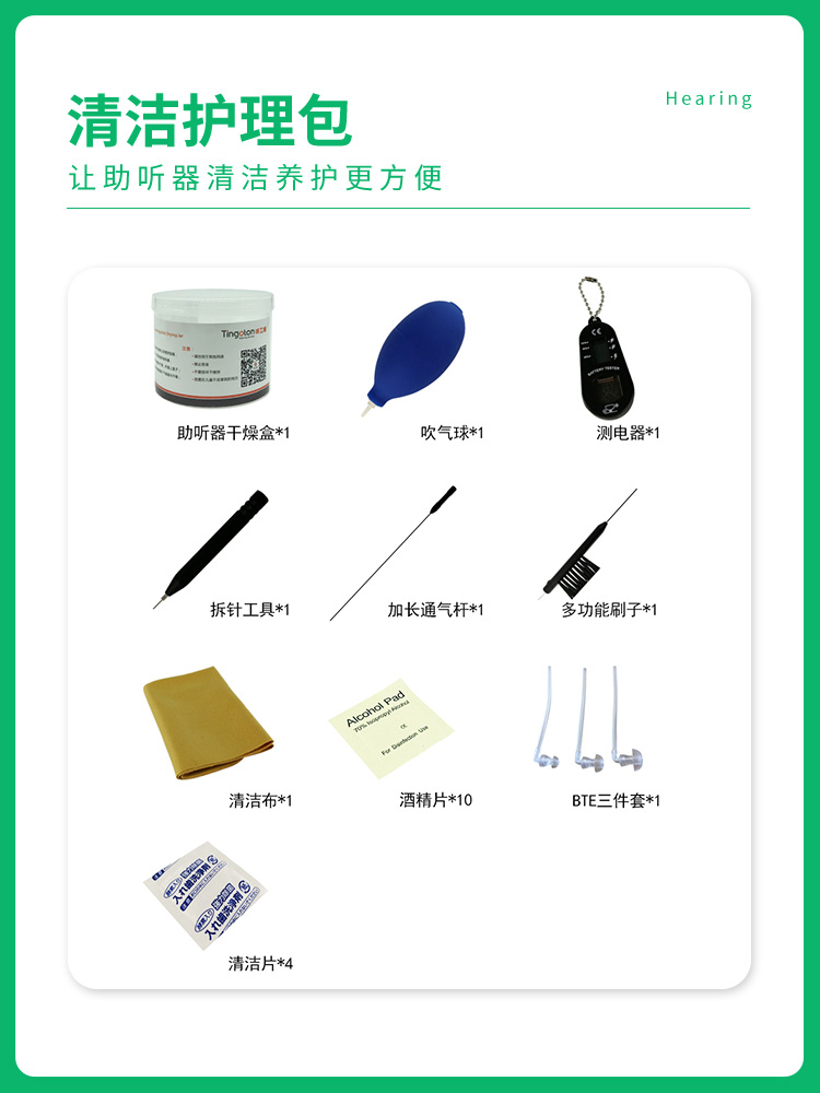 听工场助听器清洁护理包套装干燥罐吹气球测电器电池盒耳塞三件套