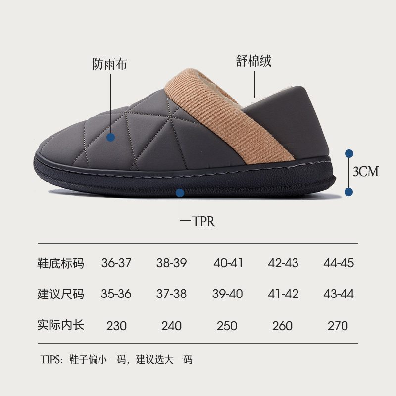 远港防水包跟棉拖鞋秋冬季男居家室内加绒保暖女地板防滑棉鞋冬天,浙江 台州