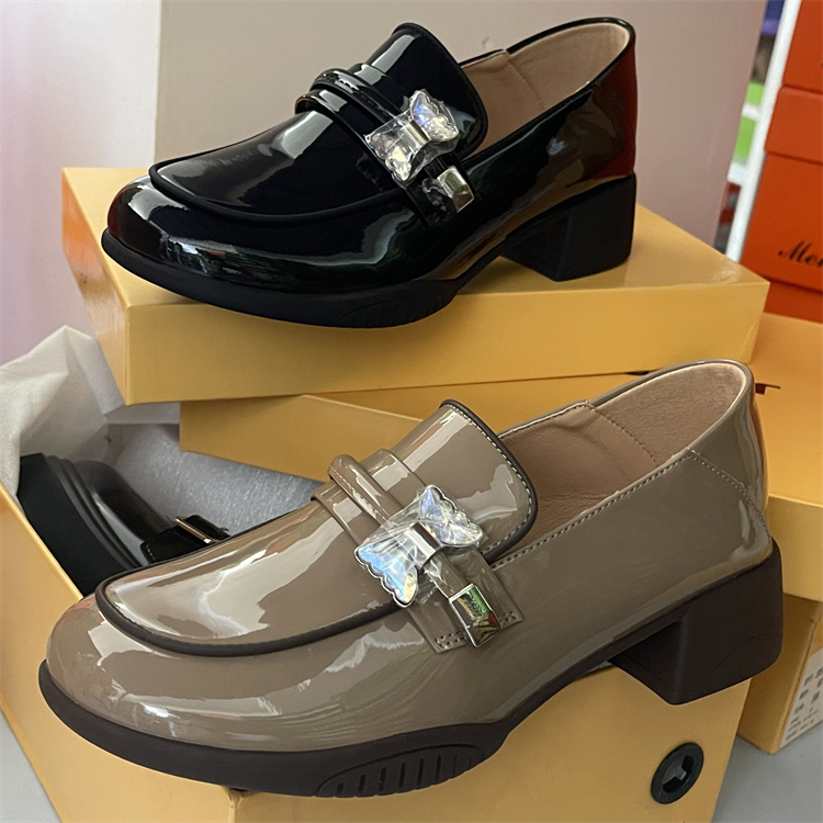 羊漆皮~专柜正品一脚蹬单鞋玛丽珍鞋2025新款真皮休闲厚底乐福鞋,江苏 苏州