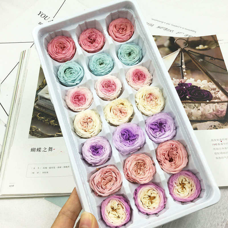 永生花4-5cmA级单朵奥斯汀diy婚礼花束鞋盒材料玻璃罩礼盒玫瑰