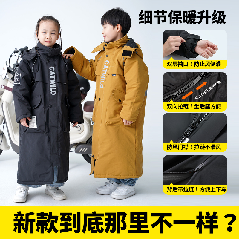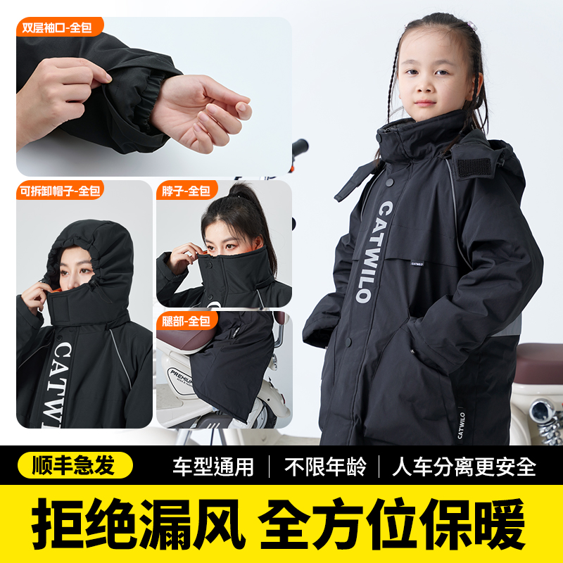 儿童亲子款电动车挡风被冬季加绒加厚骑行防寒服电瓶车后座挡风衣,浙江 宁波