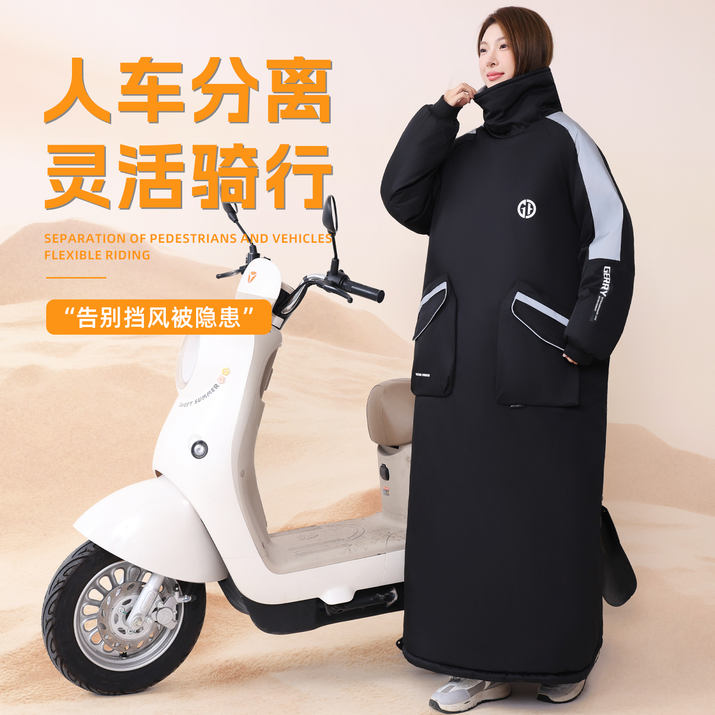 电动车挡风被冬季加厚摩托车骑行防风防寒服防水电瓶车骑车挡风衣,浙江 宁波