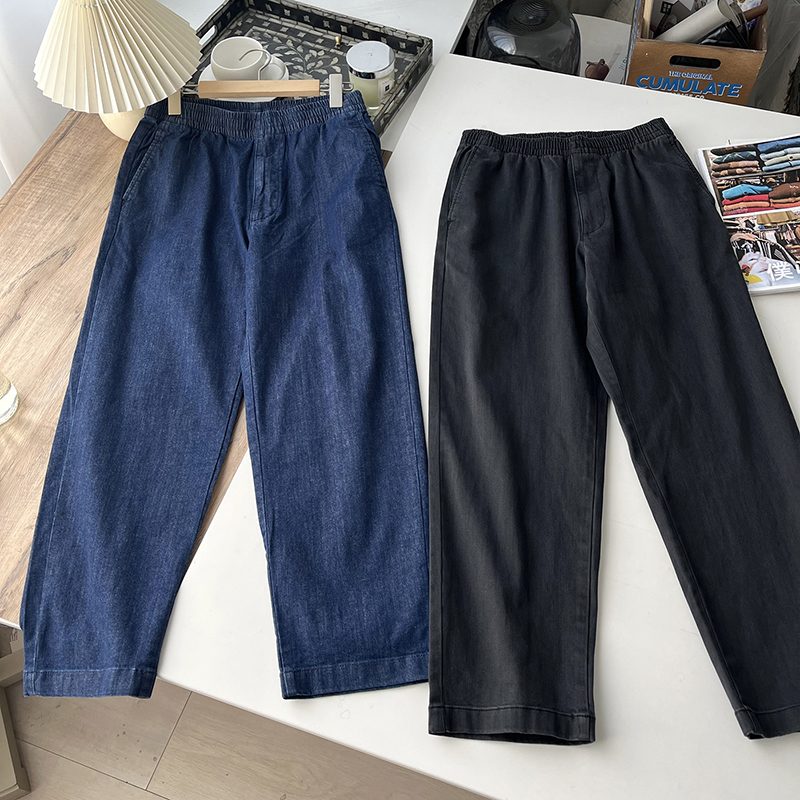 北野U家!男装女装弹力棉质松紧九分裤牛仔色可作长裤BY67398
